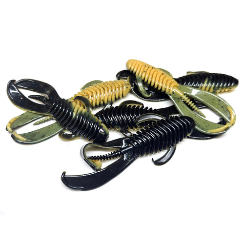 The Ribbit Runner is a 3.25" swimming frog/creature pattern. The Ribbit Runner is perfectly sized for Power BFS and Finesse Styles of fishing. The flowing back legs feature a kicker lip on each end, giving this bait action on both the fall and on the retrieve. The shorter front arms also feature the same kicker lip design. The added pintail between the legs gives this bait another added layer of action when twitching and moving the bait slow. You can fish this bait weightless, on a plain jig, weedless, Texas rig, cheb rig, Carolina rig and even on a drop shot.