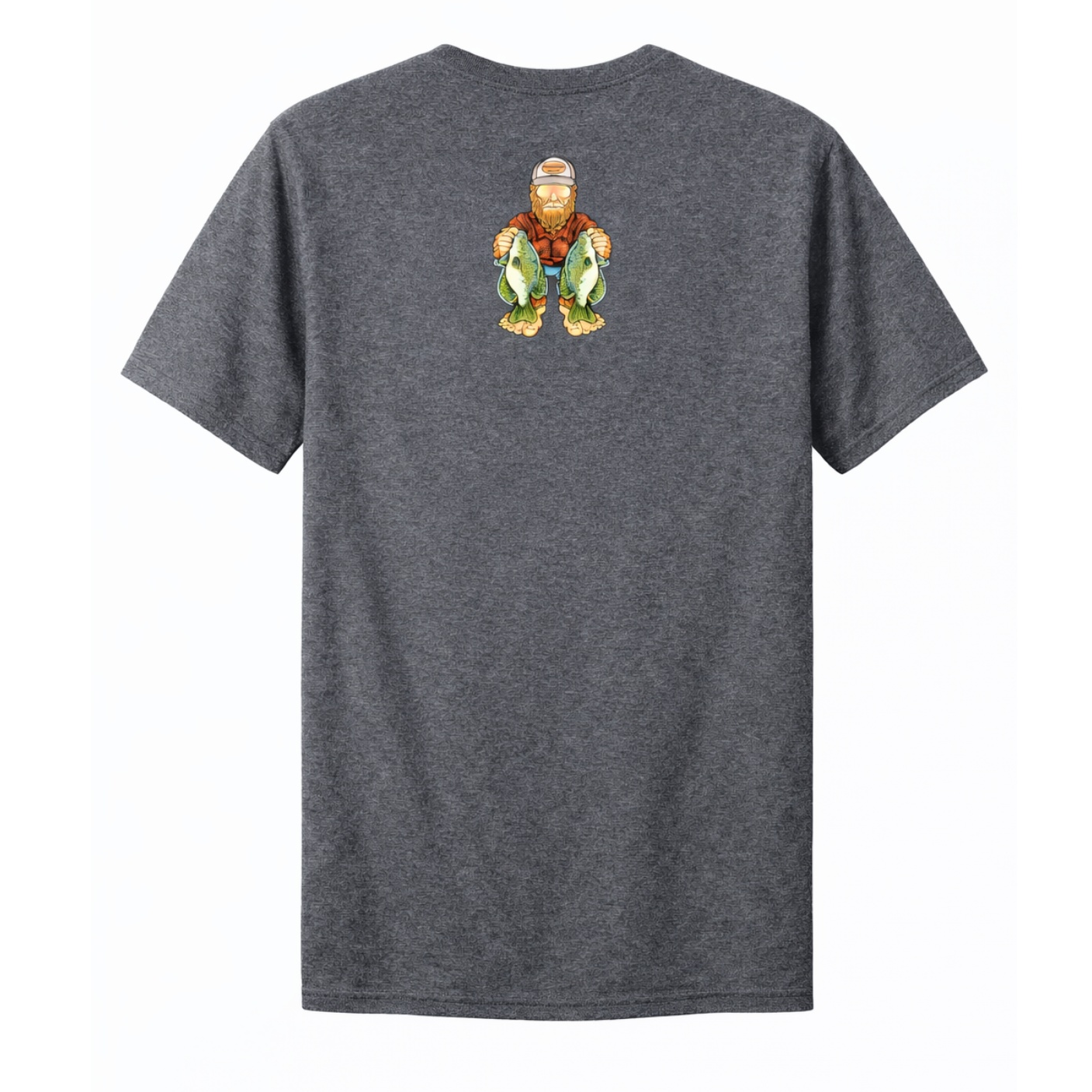 Moondog Sasquatch Crappie T-Shirt with the Moondog Logo on the front and Sasquatch Crappie on the back. Heather Dark Gray Color. 100% Cotton T-Shirt. Regular Fit.