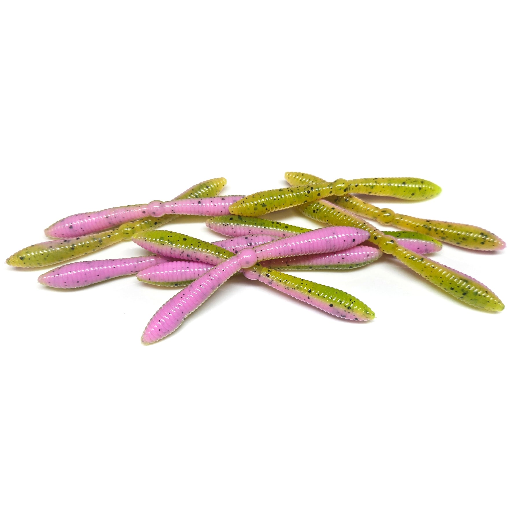 The 3" Wacko Worm is the perfect wacky worm for BFS, Ultralight and Finesse fishing applications.  This worm tapers from a thick end on the both sides, down to a thin section in the middle of the worm.  This gives this small worm extreme action.  The lightest movement of the bait will cause this worm to quiver and move.  Perfect for triggering pressured Bass on a difficult bite.  Trophy Panfish also love this worm!  Fish them weightless, on a small jig head and even on a drop shot!